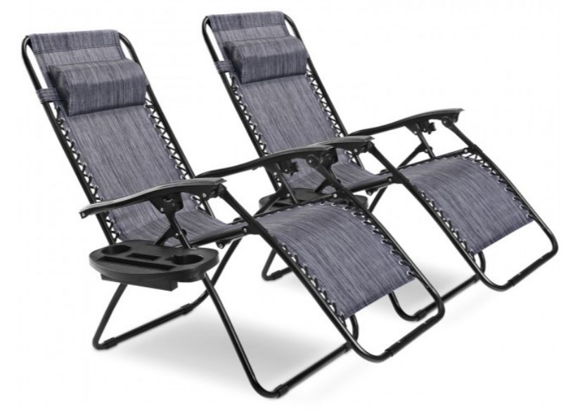 2 Pcs Folding Lounge Chair with Zero Gravity In Gray