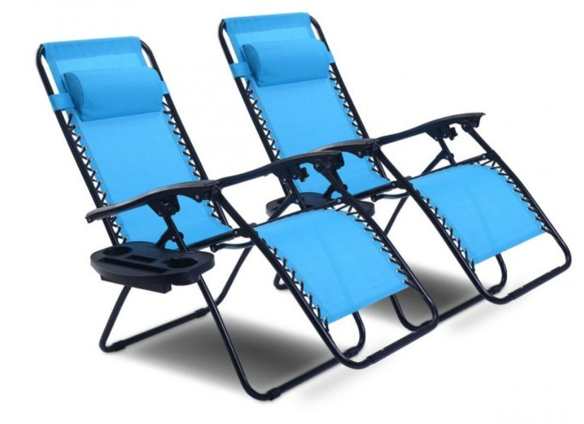 2 Pcs Folding Lounge Chair with Zero Gravity In Light Blue