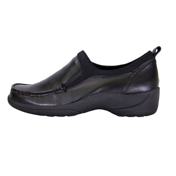 24 HOUR COMFORTÂ Lora women’s extra wide width comfort leather shoes. Walkthrough this season with ease and style in our moccasin design loafer that features a leather upper with a spandex top-liner, 1″ low-heel, along with maximum traction, lightweight, and durable EVA outsole, making it ideal to keep your feet comfortable and going all day long.