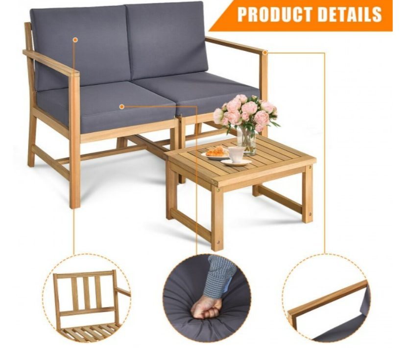 Made of premium acacia wood, this set is sturdy and durable. It’s shipped with a thick seat and back cushions for an ultimate comfort and fatigue relief. Even better, the smooth zipper aids in cover removal and cleaning process. Additionally, the coffee table can be used on its own that suits your varying requirements.