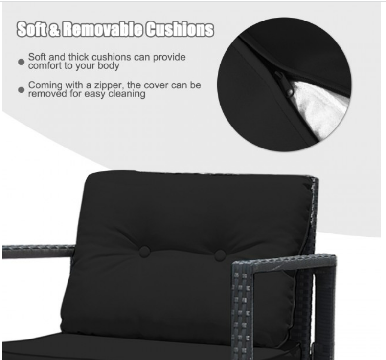 The rocking chairs are designed to rock slowly and gently which will bring you a fantastic feeling. Comes with soft and thick cushions, you will feel extreme comfort for your hip and back when you sit on the chair. And the cover of the cushion is equipped with a zipper for easy removal and cleaning. Our set also contains a coffee table that has a lower shelf to provide additional storage space. With our furniture set, you will have a comfortable space for relaxing conversations with friends and family or reading a book alone and enjoying your morning coffee.