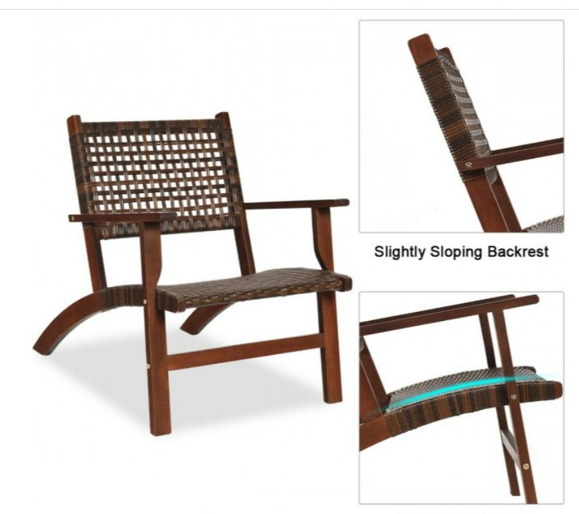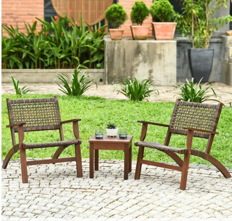 3 Pieces Outdoor Wooden Patio Rattan Furniture Set