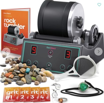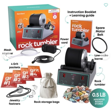 Includes rock tumbler machine, low-noise barrel (1 lb. capacity), 4 grit packets, 1/2 lb. assorted rough rocks, mesh strainer, jewelry fasteners, gem storage bag, and an illustrated easy-to-follow instruction and learning guide. - Â POWERFUL QUALITY: