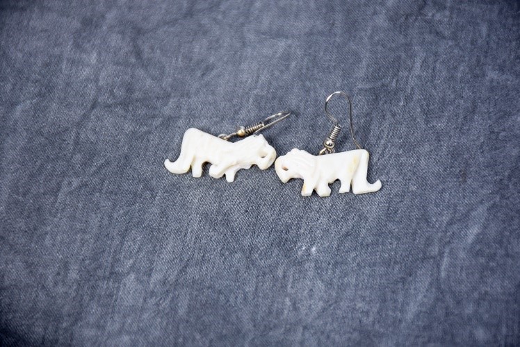 HANDMADE LONG DANGLE AND DROP AFRICAN BONE EARRINGS MADE OF REUSED, UP CYCLE COW BONE AND STEEL. HANDMADE AUTHENTIC AND UNIQUE FROM AFRICA IN ANIMAL (LION) SHAPE. HANDMADE WITH LOVE, PASSION AND PRIDE BY SOME OF GREAT AFRICAN ARTISANS.