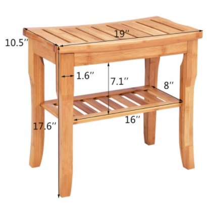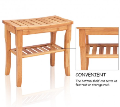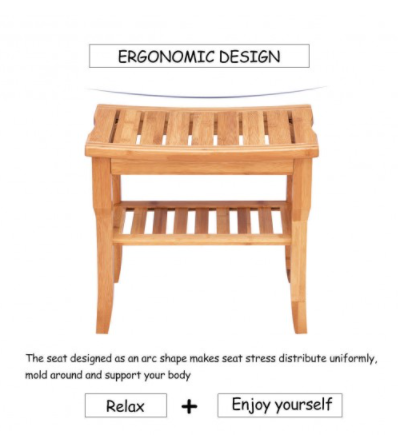 - Sturdy & Eco-Friendly Design: This bench is constructed of high-quality solid bamboo material and handled with exquisite craftsmanship so it is equipped with waterproof and antibacterial qualities. Compared with a common shower stool, shower seat, or shower chair, our bamboo bench has an extra built-in storage shelf to store your spa accessories, wet towels, and shower tools and bring you much convenience.