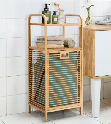 - Tilt-Out Bamboo Laundry Hamper: Beautiful lightweight design, space-saving, two-in-one design with the eye-catching bamboo finish. Add a touch of modern flair to your bathroom with this shelf with a tilt-out hamper.