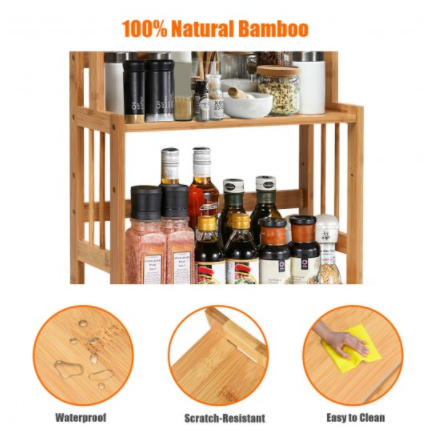 - Versatile Utilization in Different Occasions:Â In addition to the kitchen, the 3-tier storage organizer can also be used in the study, bedroom, and bathroom to store books, cosmetics, towels, and other items as you like. The bamboo rack would function with its space-saving design and multifunctional use in every room it displays.