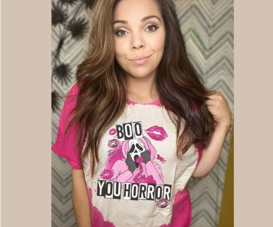 OUR CLASSIC MODAL SPANDEX S/S V NECK IS MADE WITH THE SOFTEST FABRIC WITH A 5 ROW HEART GRAPHIC AND A 3 HEARTS GRAPHIC ON BACK WITH A FLATTERING FIT.