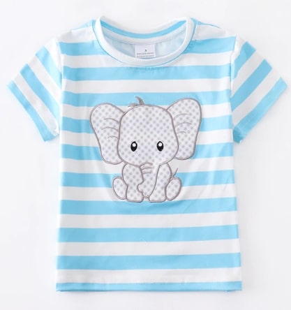 Keep your little one looking cool in this Blue Stripe Elephant Short Sleeve T-Shirt.