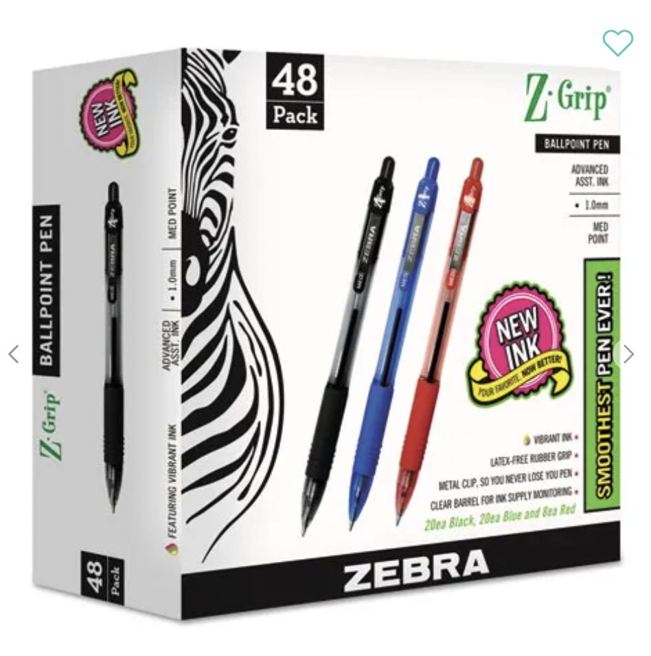 Ballpoint Pens Medium Point 1mm – Zebra Z-Grip Retractable Assorted Ink 48pk