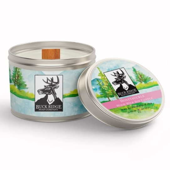 Honeysuckle Sustainable Wood Wick Soy Candle is scented with our sweet honeysuckle fragrance which is a wonderful and soft floral scent. A fresh and clean floral scent (that matches our other honeysuckle products) for you to enjoy anytime, since this candle is in a tin with a lid you can take it with you when traveling if you want! Made of 100% sustainable soy wax and hand poured into a reusable metal tin once the wax and wick is all used up. The wick is sustainable cherry wood which is better for the environment and provides the sound of a crackling fire and more ambiance than a cotton wick.