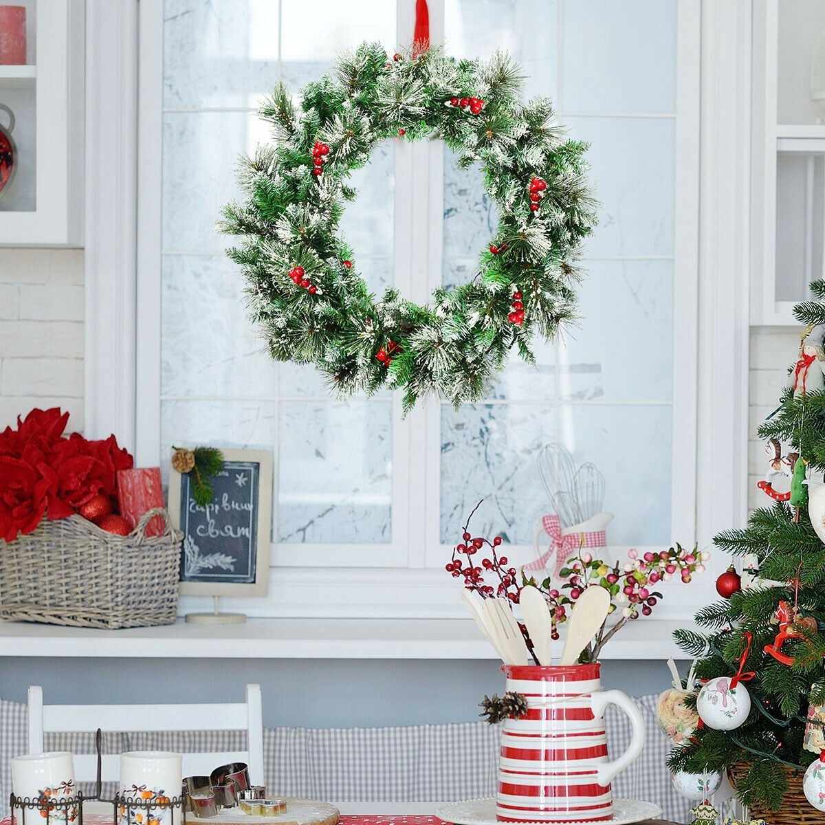 ● Rich Ornaments & Festival Details: Beautiful silver bristles and red berries that full of festival elements decorated on the wreath, which delivering the strong Christmas atmosphere, with no need to buy other decorations. Moreover, it makes your decoration finest and eye-catching.