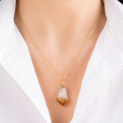 Citrine Crystal Pendant Necklace In Gold