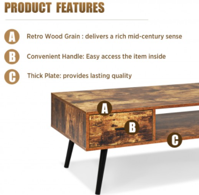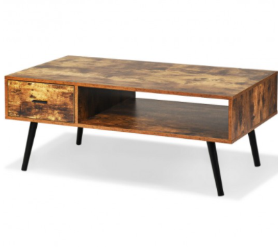 This retro-inspired coffee table will highlight the center of the room! The table is supported by sturdy pine wood legs to enhance its stability. A smooth surface with natural wood grain is waterproof and wear-resistant for practical daily use. It is designed with a spacious tabletop, a drawer, and an open storage shelf, which allows you to display and put various items, such as photo frames, books, teacups, or plants. Mid-century modern style is eye-catching and easy to coordinate with home decor. It is perfect for bedroom, living room, office, etc. You can put a coffee cup on the table to enjoy leisure time.