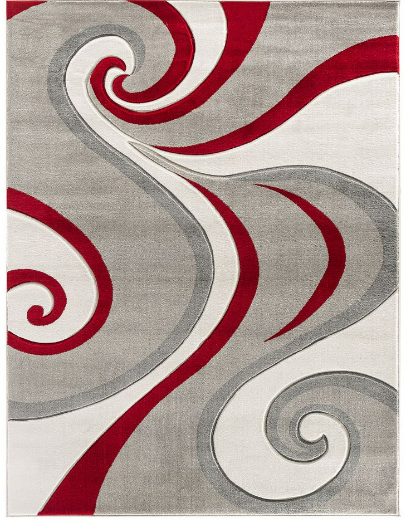 Area Rug 3’8″ x 5’6″ Contemporary Design Hand-Carved Soft Living Room Modern Red Silver Grey Swirls