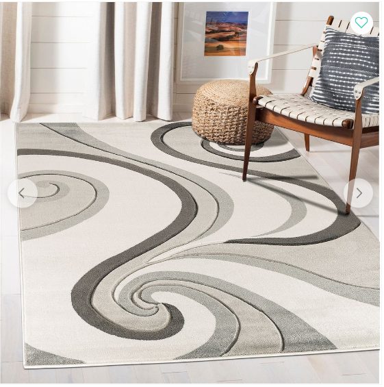 Area Rug 3’8″ x 5’6″ Contemporary Silver Grey Swirls Design Hand-Carved Soft Living Room
