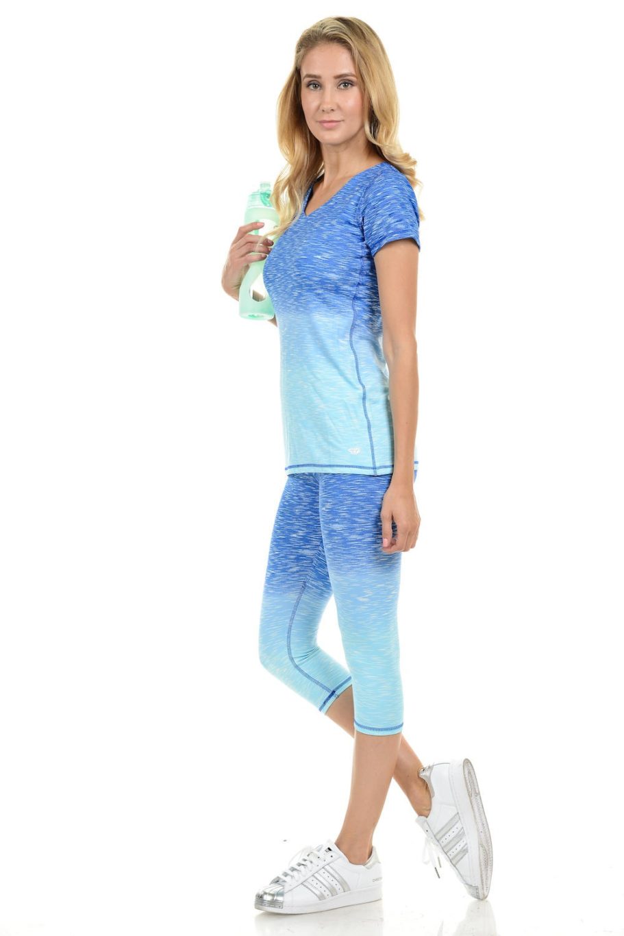 -Fabric: Made in our unbelievably soft fabric to give you flattering, lightweight compression, this capri pants have a high rise that’s perfect for all your asanas. Combined in two shades of blue, have a finished with sparkles that will make you look fabulous anywhere you are. 92% polyester, 8% spandex