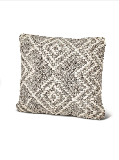 The Handwoven Grey Diamond Pillow features a unique diamond pattern that can be styled with any piece in the collection.