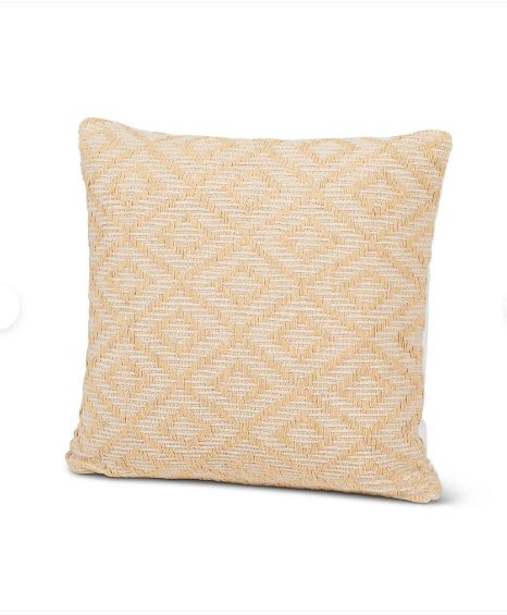 The Handwoven Yellow Diamond Pillow features an earthy yellow and beige diamond pattern that can be styled with any piece in the collection.