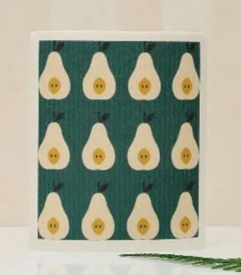 Swedish Avocadoes Dishcloth. Made out of 70% cellulose-30% Cotton. Biodegradable, sanitary, and dries out quicker than sponges. Ultra-absorbent and durable. No more “stinky” sponge!