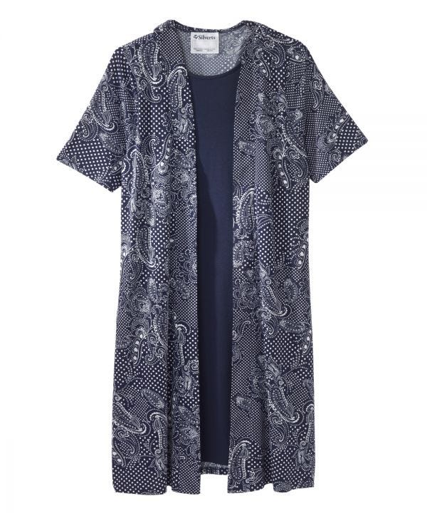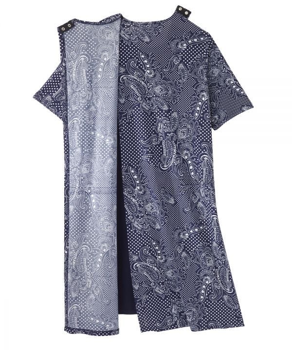 Senior Women’s Open Back Twofer Dress is ideal for assisted dressing. This dress features a discrete and generous back overlap for additional coverage with snap closure at each shoulder for caregivers to easily secure this handicap garment.