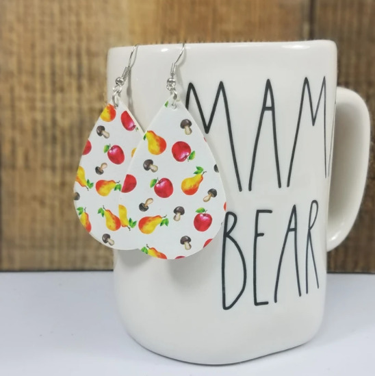 Add one of our fun faux leather earrings to your outfit for a cute, trendy look. Our faux leather earrings come in prints and solids with fun glitter accents. They measure approximately 2.5 inches for the earring and an additional 1/2 inch stainless steel hook.