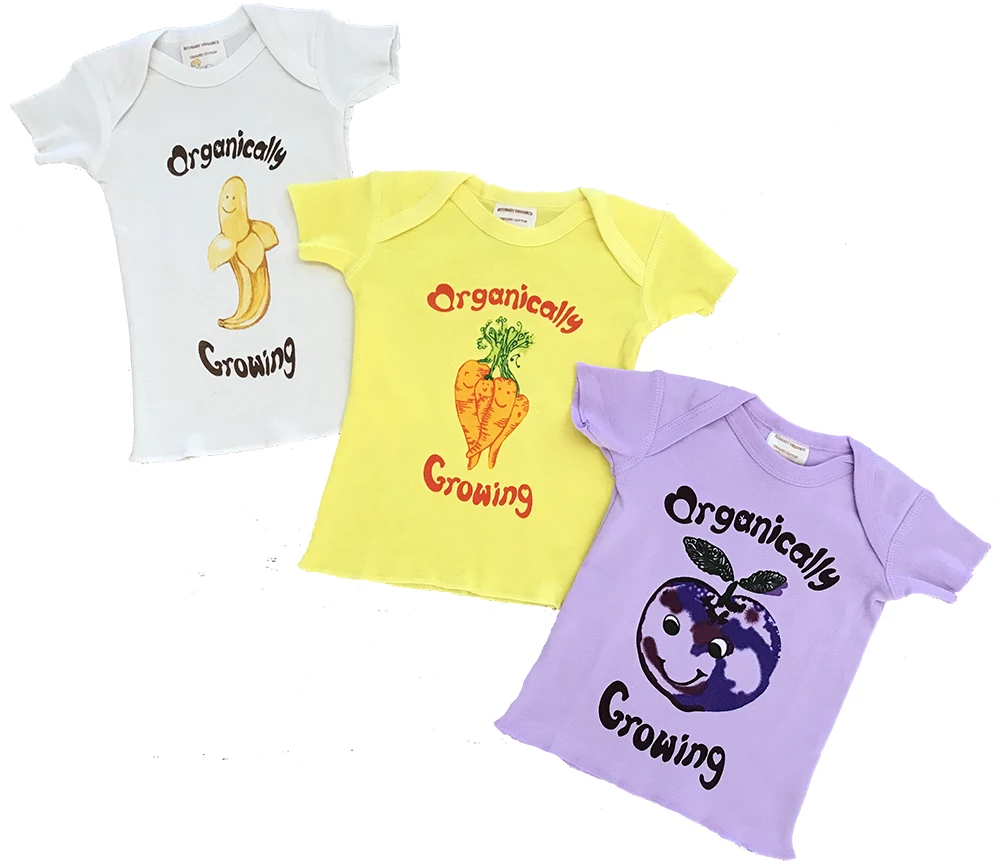 Our short sleeve infant tees are designed for infants with a lap shoulder to make it easy to put those little arms in the shirt. Super soft fibers, and dyed with low impact eco dyes. Cute organically growing logo. Fits infants to about 4 months or so.