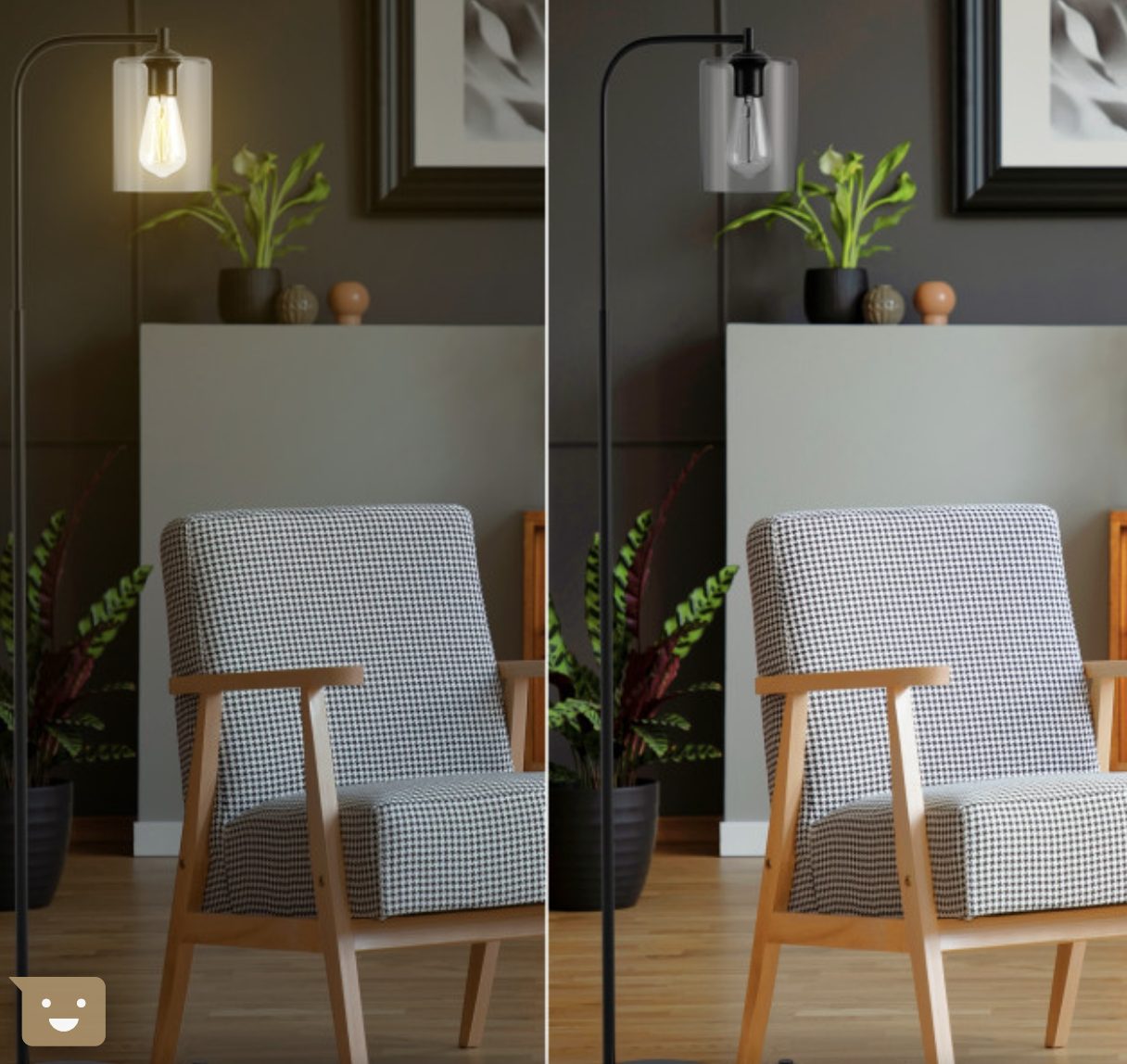 ● Industrial Floor Lamp: This metal floor lamp has a unique industrial design that can quickly catch the attention of other guests and impress them. The special transparent glass lampshade makes it ideal for multiple styles of decoration, such as minimalist, industrial, and mid-century.