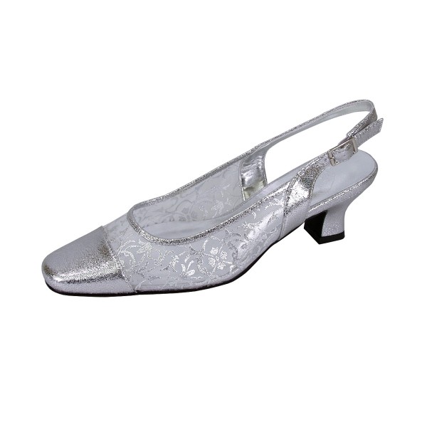 FLORALÂ Josie women’s extra wide width closed toe nylon mesh dress pump is a versatile heel with an intricate floral pattern and adjustable back strap. This gorgeous slingback with its metallic sheen and texture provides countless, fun styling options.