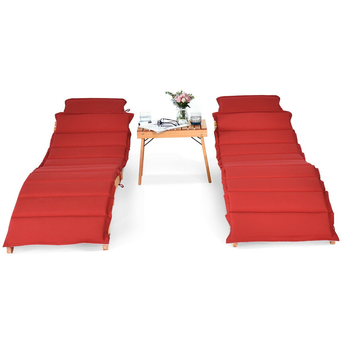 Folding Patio Lounge Chair Table 3PCS Wooden Set