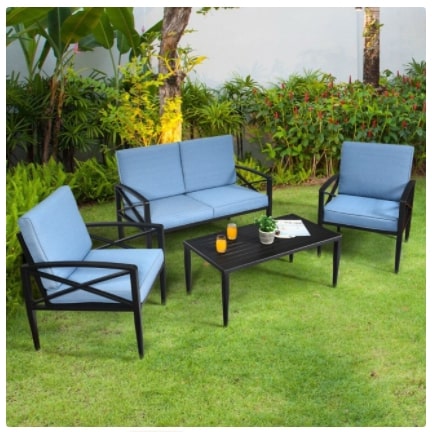 Furniture Set Outdoor 4 Piece Aluminum Framed Patio Sofa