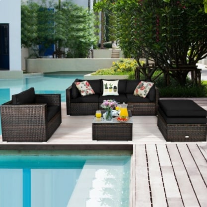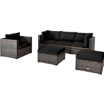 Furniture Set Outdoor 6 Piece Rattan Sectional With Black Cushions