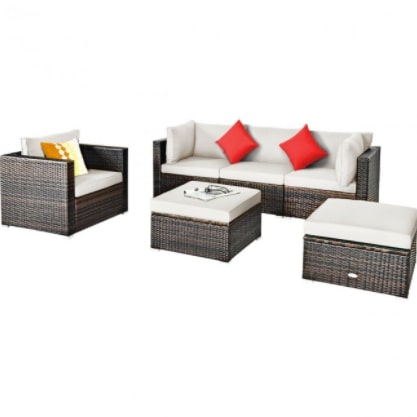 Furniture Set Outdoor 6 Piece Rattan Sectional With White Cushions