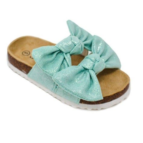 Girls Sandals Birkley Slip-On Metallic Double Bow Design In Mint