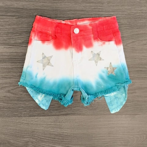 Your little girl will skip into sweet summer style with the Red White & Blue Dip Dye Star Shorts.