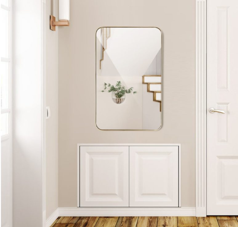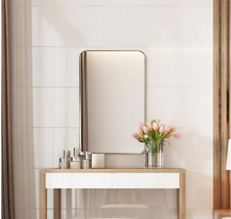 The frame of this modern mirror is made of premium power coated metal which can acclimatize to humidity. Large size mirror with high resolution can clearly show your beautiful face and fine clothes