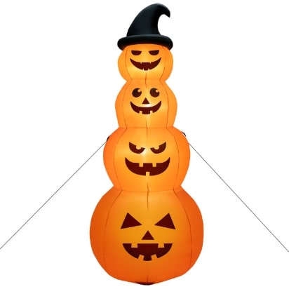 Eye-catching LED lights and 4 lifelike pumpkin faces will attract trick-or-treating kids and fill your yard with a hot holiday vibe. Made of high-quality materials with fine workmanship, this Halloween pumpkin inflatable decoration permits a long service life. With a built-in blower, inflation will be a breeze. Decorate your yard, porch, or living room with this 4-tier inflatable stacked pumpkin and you will enjoy an unforgettable Halloween!
