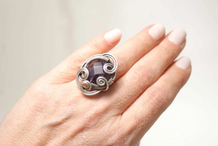 This wire wrapped amethyst ring is adjustable and will fit just about any size.