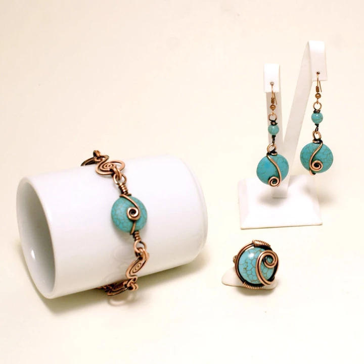 Handmade Wire Wrap Turquoise Jewelry Set