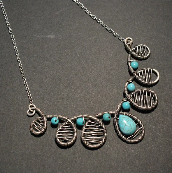 Handmade Wire Wrap Turquoise Statement Necklace