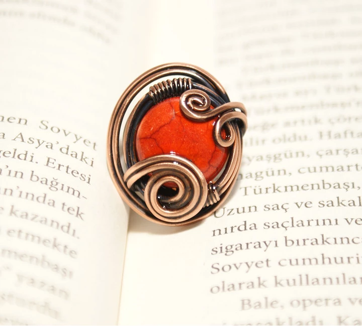 Coral red jewelry set, copper jewelry set, coral red necklace set, coral necklace and ring set, gift for her, coral ring and necklace set.