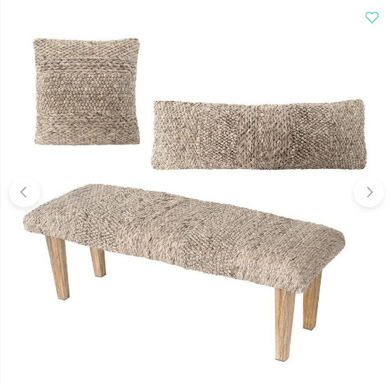 Handwoven by skilled artisans in the Haryana state, the Handwoven Textured Taupe Pillow matches our bench and is both comfortable and distinctive