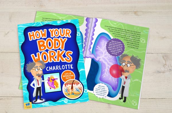 Professor Snippet, the micro scientist, takes an amazing, internal, fact finding voyage around the body. Entering by mouth the professor clearly explains the functions of body parts as he journeys from head to toe. With colorful illustrations this book is ideal as a basic introduction for young ones to human biology. The book is personalized throughout with a child’s name, and you can add a personal message to the opening page to make this a truly personal, educational gift.