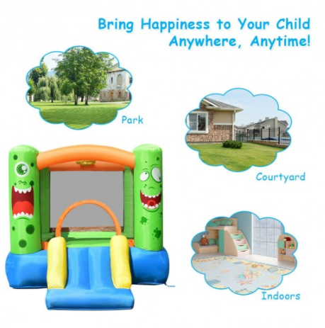 - Endless Happy Time:Â In addition, there is an inflatable slide connected to the jumping area. Your child will have hours and hours of fun jumping around and sliding down, over and over again. And a built-in basketball rim provides extra entertainment for your little ones. Moreover, a big entrance allows convenient access for everyone. Provide your child with a joyful and memorable childhood.