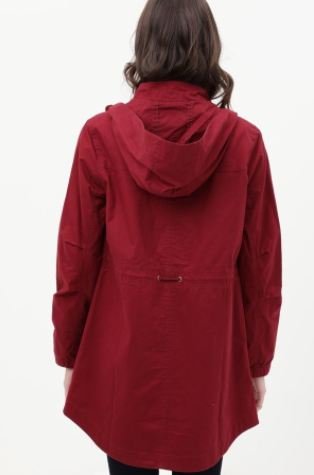 Jacket Wine Long Line Hooded Utility Anorak