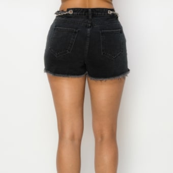 Jean Shorts Distressed Side Chain Detail Black Denim