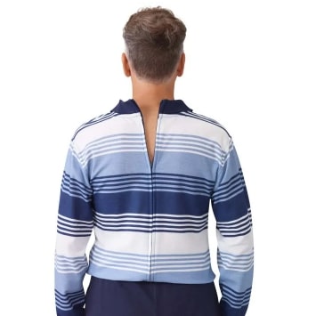 Jumpsuit Assisted Dressing Navy Pants & Navy Striped Long Sleeve Polo Design