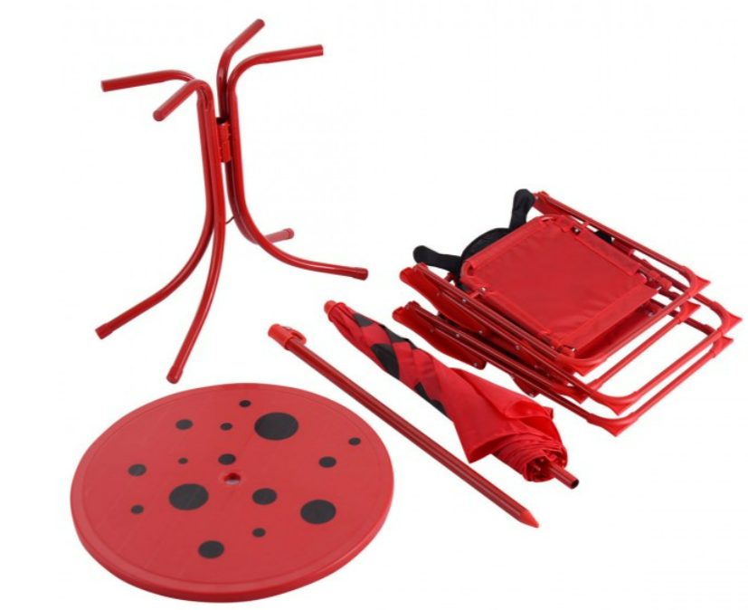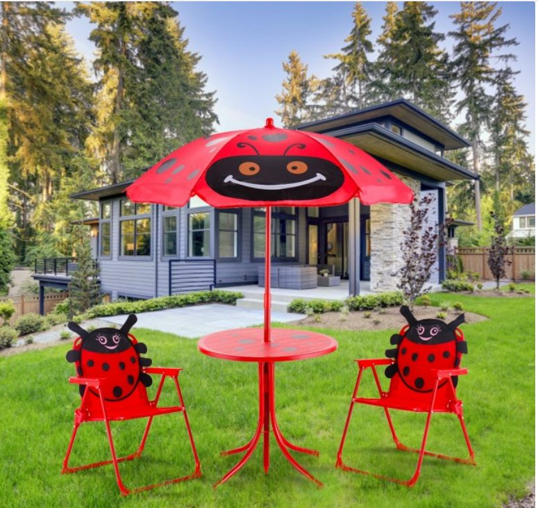 Kids Patio Folding Table and Chairs Set Beetle with Umbrella
