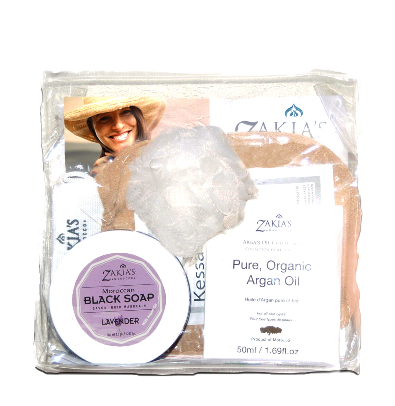 A lovely gift for those wanting an elegant Argan Oil gift box and the perfect compliment of Moroccan Black Soap and Kessa Exfoliating Glove. This is the perfect kit to keep with you at all times. You’ll always be glad you have our moisturizing hand-made olive based soft soap to gently cleanse away those daily grits and grimes. No additives whatsoever in this natural, ph balanced soap. Use daily you will see and feel the difference. Exfoliate once a week to provide that smooth polish so important for healthy, thriving skin. And of course, who doesn’t know that Argan Oil is great for skin and hair alike. Make sure it is 100% pure and organic. Just look at our ingredients and you will see why our customers are so pleased with Zakia’s Morocco products.