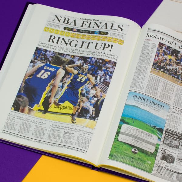 “Everything negative – pressure, challenges – is all an opportunity for me to rise.” The words of the late Kobe Bryant, whose life was tragically cut short at the age of 41. Two-time Olympic gold medalist Bryant will forever be remembered as one of the NBA’s greatest ever players. 20 seasons at the top level saw the ‘Black Mamba’ win countless accolades, including 5 NBA championships, 18 NBA All-Star selections and an NBA MVP Award. This 222-page book tells the story of Kobe Bryant’s career through LA Times news articles and captures every success that the Lakers’ Shooting Guard ever achieved. A keepsake gift and a tribute to the memory of a man who transcended his sport and became a global icon. Personalize this book with a message on the opening page and emboss the front cover with the recipient’s name. Coffee table sized and bound in a choice of purple or leatherette covers.